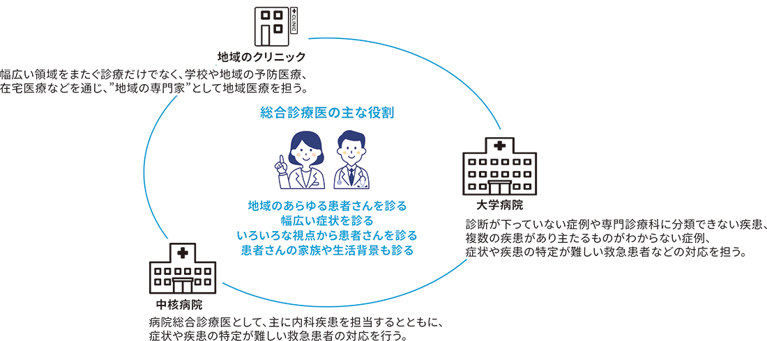 しかし、実はそうした診療を行う総合診療医に求められる役割は、勤務する場所によって違います。それは、それぞれの場所でニーズが異なるためです。